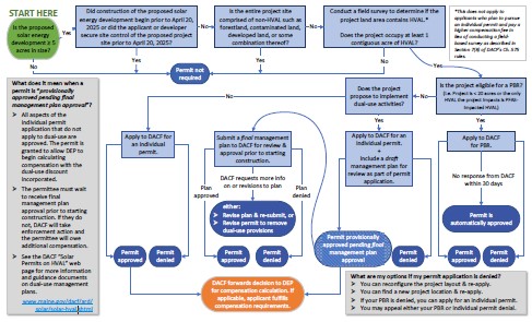| Permitting Process Flow Chart (PDF) | This figure depicts a high-level overview of the process for permitting solar energy developments on HVAL. Last updated on 6/11/2025. |