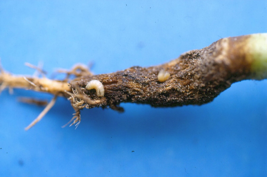Cabbage maggots damage and destroy root systems of all cole crops, riddling roots with tunnels when infestations are heavy. Tunnels provide entryways for pathogens. Young plants between seedling emergence until about a month after thinning or transplanting are most vulnerable.