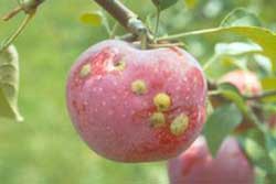 The plum curculio is a very destructive pest of plums, apples, peaches, pears, cherries and other wild and cultivated fruits. Injury occurs in three ways: from spring and early fall feeding by adult weevils; by egg-laying in the fruit by females; and from the feeding of larvae within the fruit. They overwinter as adults in the soil within the orchard or in nearby woodlands.