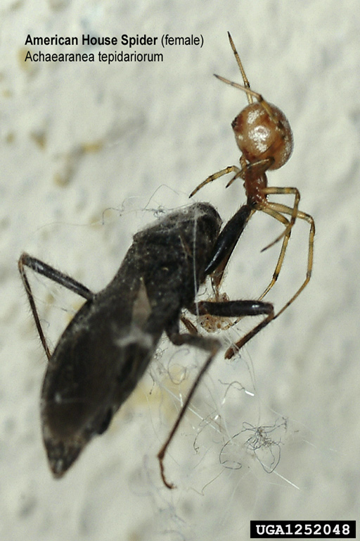 House spiders (Achaearanea tepidariorum) are common in barns and houses, where they construct webs in the corners of walls, floor joists, and windows. Because they frequently abandon their web to build new ones nearby, they can produce many webs in a short period of time.