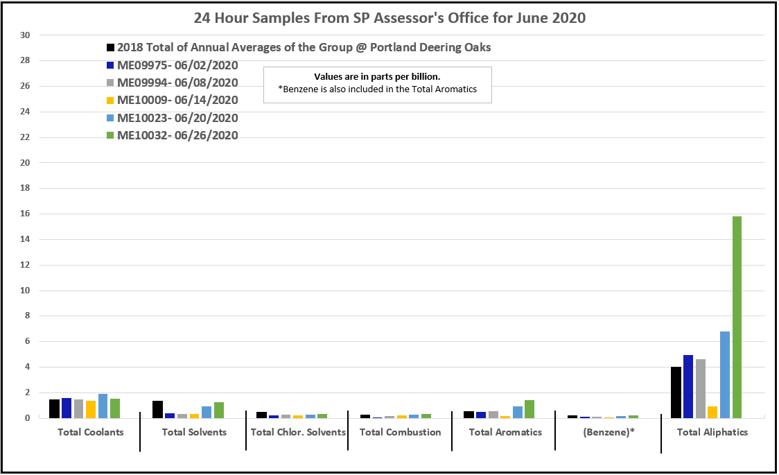 - The remaining six canisters (ME09229, ME09231, ME09232, ME09233, ME09234, ME09235) are void due to laboratory error. The canisters were not pumped down before shipment to South Portland therefore it was not possible to collect a valid sample of ambient air.